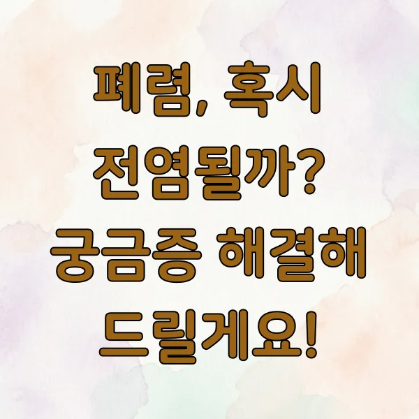 폐렴이 다른 사람에게 옮을 수 있는지, 어떤 종류의 폐렴이 전염되는지, 그리고 예방은 어떻게 해야 하는지 궁금하신가요? 이 글에서 쉽고 명확하게 알려드릴게요!